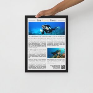 Whether they collect gear plan dive trips or dream about coral gardens, this framed article captures the emotional side of diving that simple objects can’t express. It is a gift that respects their obsession, validates their joy and gives them something to display proudly at home or work. For ocean lovers for diving dreamers and for anyone whose happiest moments happen underwater, this is the gift that finally matches their passion.