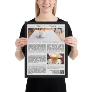 This framed article celebrates the flat white obsession with humor, warmth, and editorial style. It is written as a serious tribute with a light tone, designed to make flat white lovers feel fully understood. The story highlights balance, taste, and consistency, turning a daily coffee ritual into something meaningful and personal.