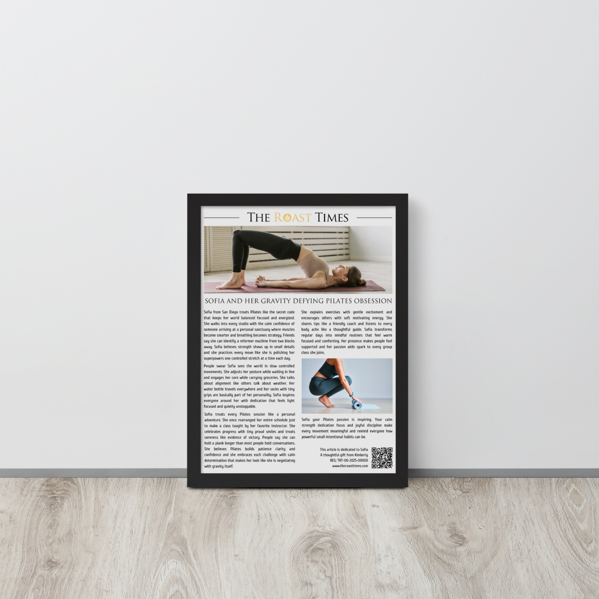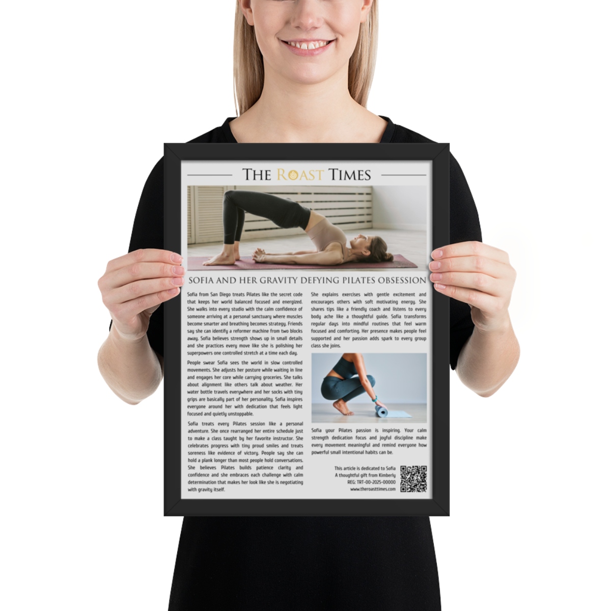 This framed editorial piece celebrates Pilates lovers who bring intention discipline and joyful focus into everything they do. Written in the signature The Roast Times style it highlights the dedication humor warmth and unique habits that shape the Pilates lifestyle. Whether they obsess over reformers breathing alignment or power moves, this tribute captures the magic behind their passion. Each framed article includes a printed QR code at the bottom along with a subtle mention of the gift giver, so the buyer becomes part of the emotional meaning behind the story.