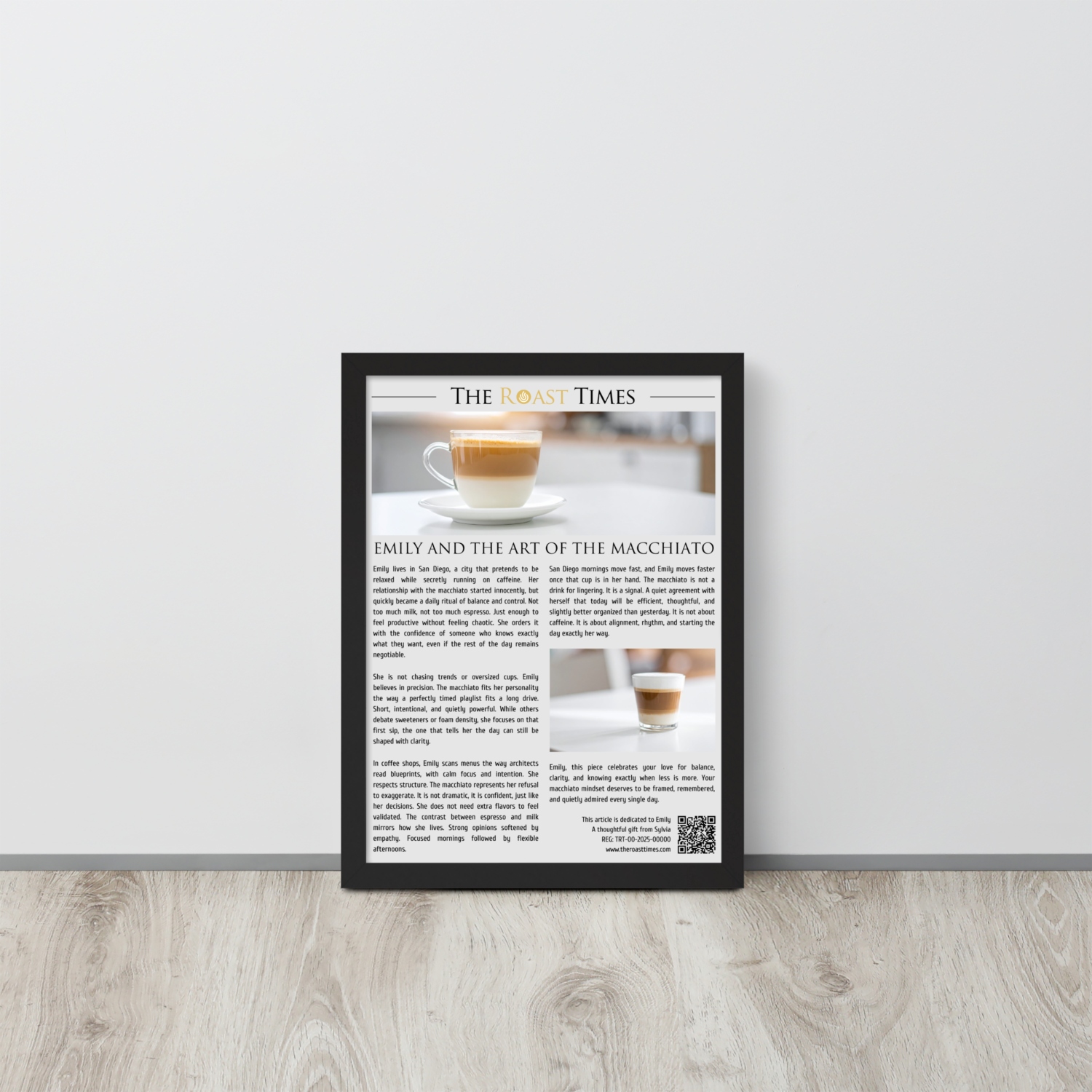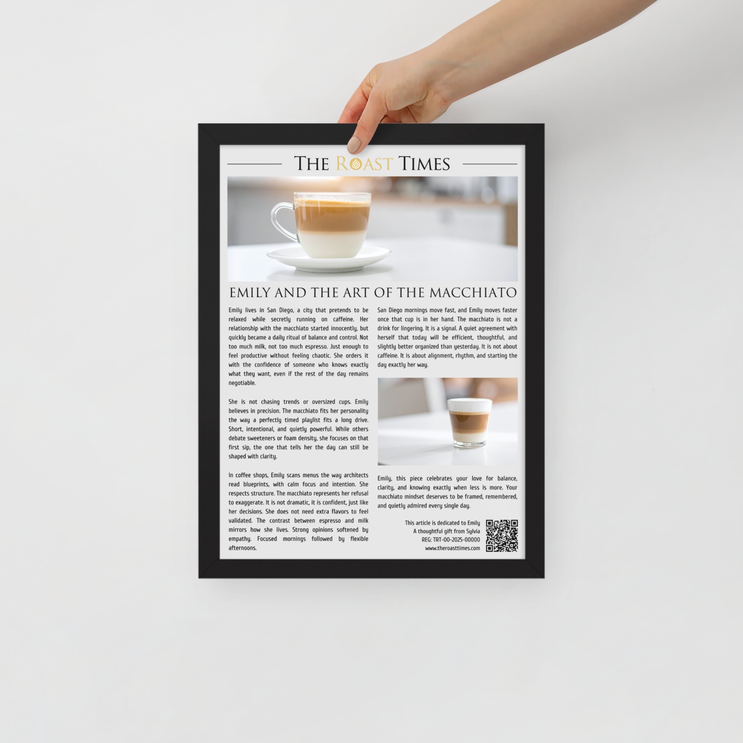 This framed article celebrates the unique mindset of a true macchiato lover. It honors the appreciation for balance, structure, and intentional choices that go beyond coffee and shape daily life. Unlike generic coffee gifts, this piece feels personal, thoughtful, and emotionally accurate.