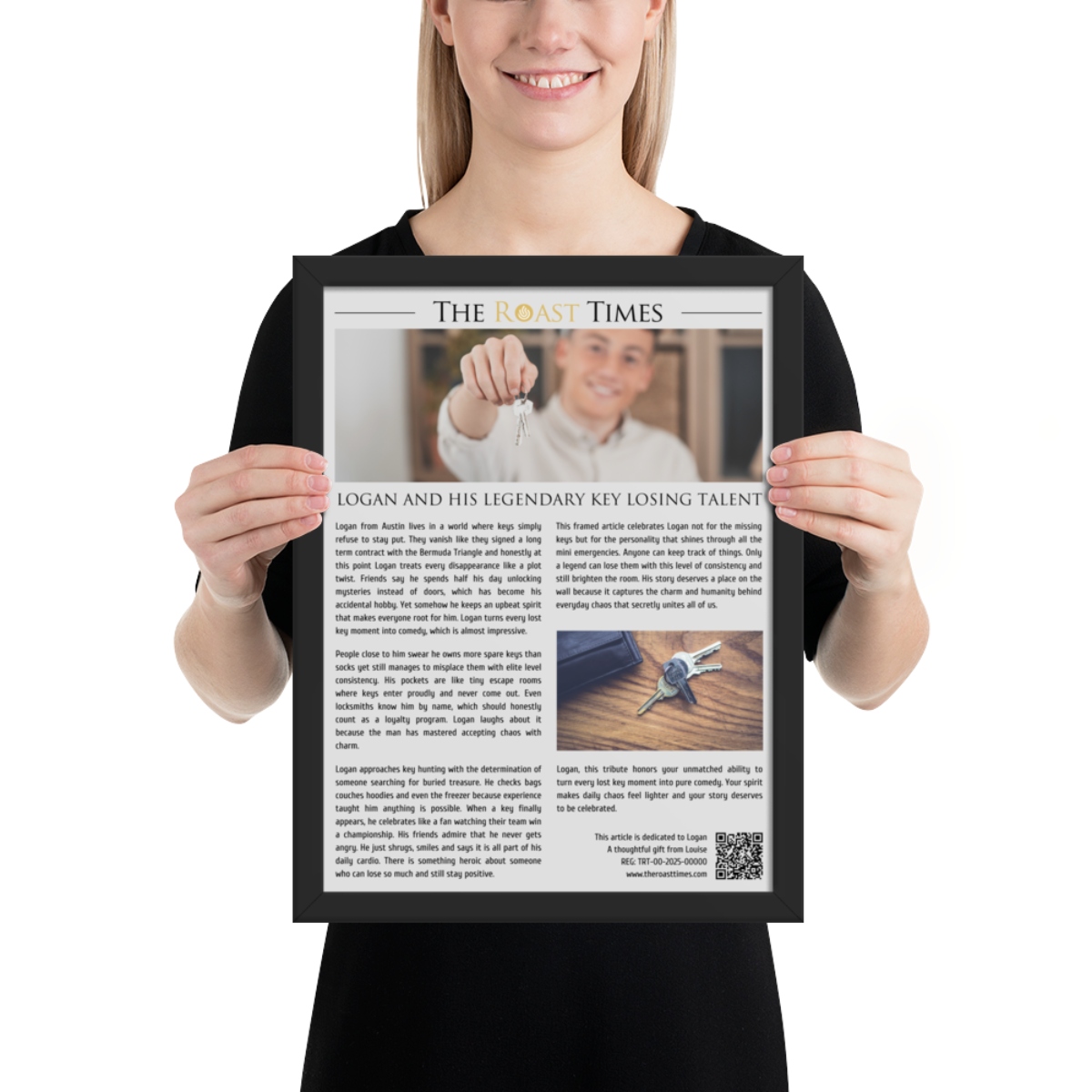 This framed article celebrates Logan not for the missing keys but for the personality that shines through all the mini emergencies. Anyone can keep track of things. Only a legend can lose them with this level of consistency and still brighten the room. His story deserves a place on the wall because it captures the charm and humanity behind everyday chaos that secretly unites all of us.